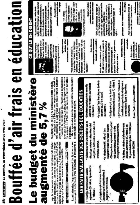 Le ministère de l’Éducation vise la réussite éducative – 28 mars 2002