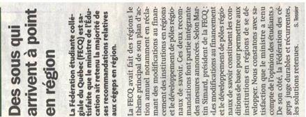 les cégeps en région à garder leur clientèle – 12 avril 2002