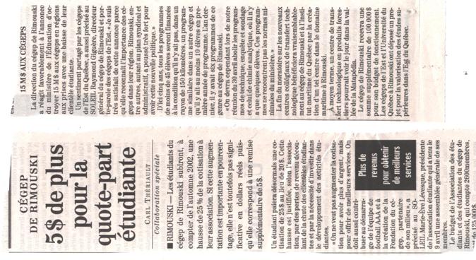 Rimouski : 5$ de plus pour la quote-part étudiante – le 25 avril 2002